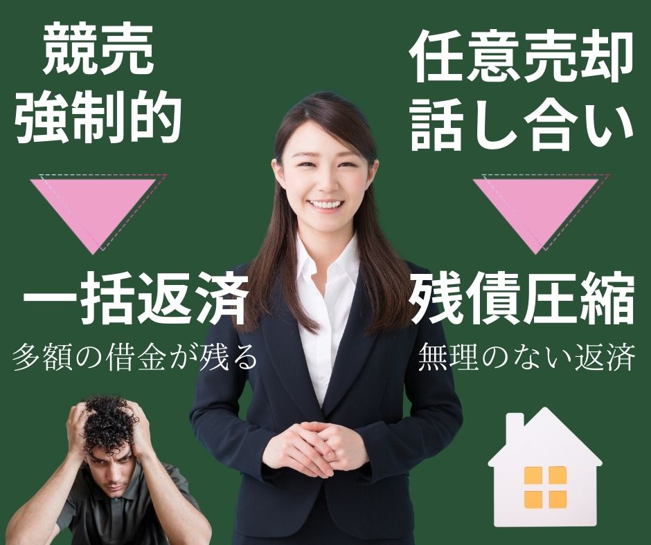 任意売却(にんいばいきゃく)は、住宅ローンを返済できなくなった場合に、借入している金融機関の合意を得て、強制的に競りにかけられる競売とは違い、自らの意思で自宅や所有不動産を売却する方法です。